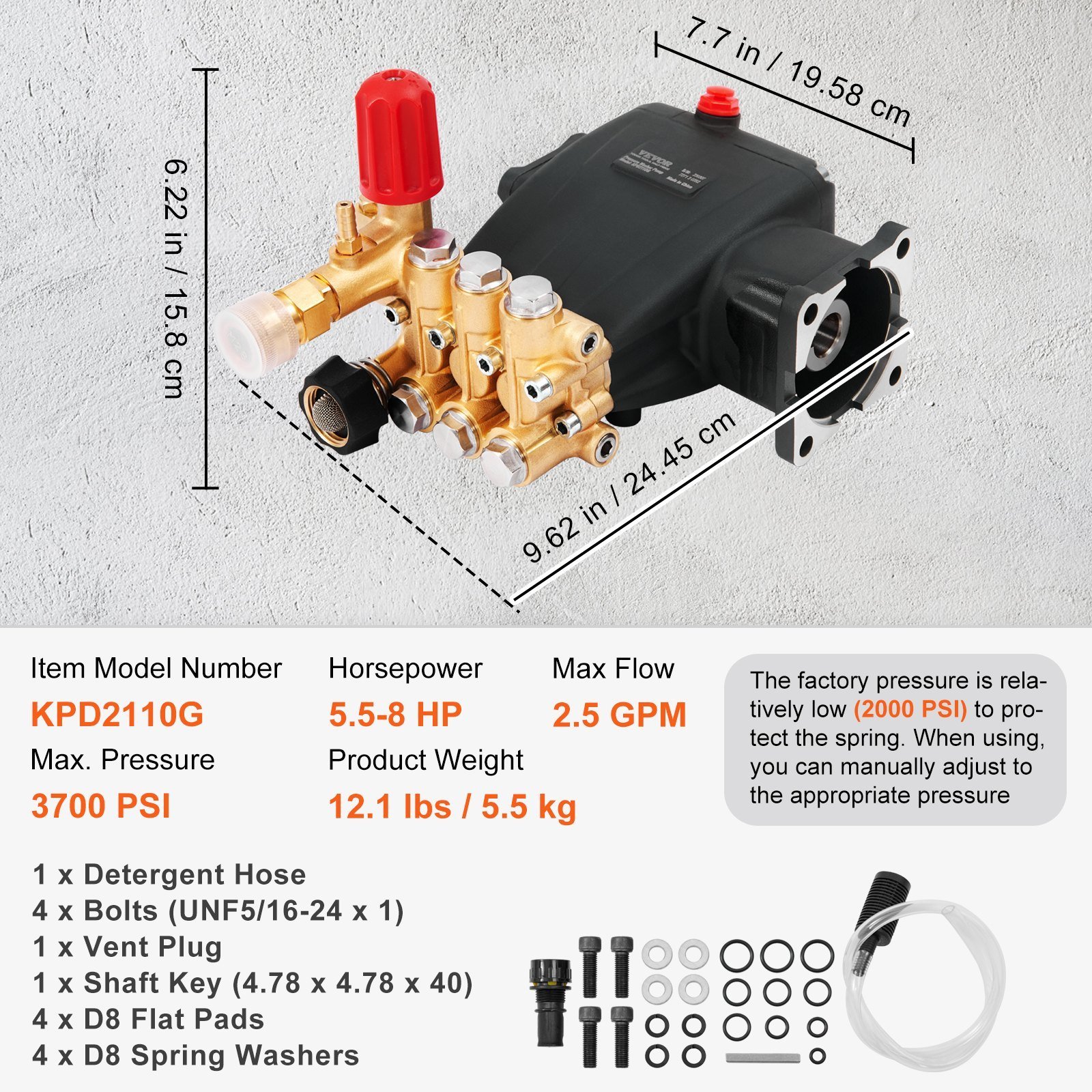 Looking for an easy way to complete your daily and professional cleaning tasks? VEVOR replacement residential pump is the one you can trust! With adjustable pressure between 2000-3700 PSI, it's perfect for boosting water pressure for your walls, sidewalks, and vehicles.